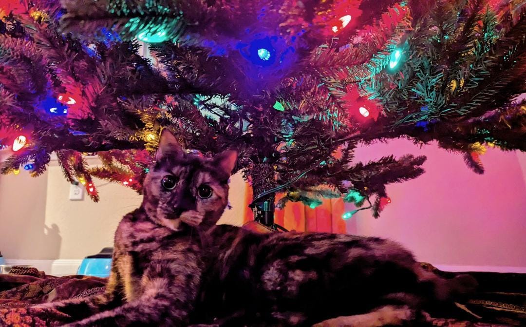 Buttercup is extremely playful and loves to climb anywhere and everywhere in the house. This makes having Christmas decorations quite stressful!
