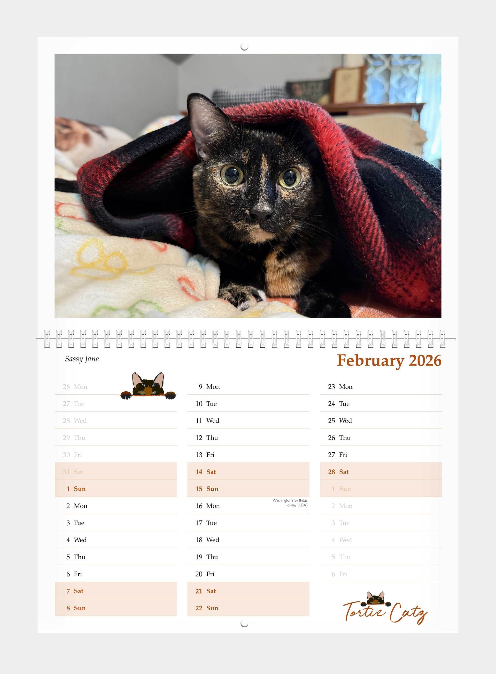 🐾 Made by the community - from 125 submissions, 12 gorgeous torties (including Sassy Jane) were chosen to star in each month.