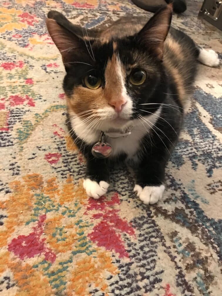 She has a lot of tortietude so she is very talkative and a good snuggle buddy,
